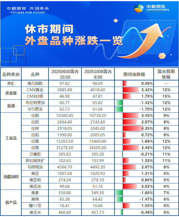十一国庆节接近尾声,中粮期货研究院推出假期特别报告《十一假期外盘回顾及内盘展望》
